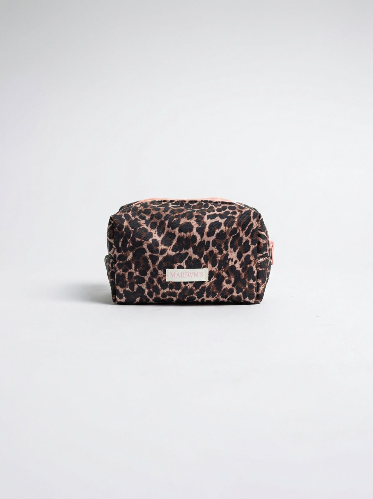 Το πιο απαραίτητο αξεσουάρ για κάθε beauty routine. Φτιαγμένο από βαμβακερό ύφασμα με λεοπάρ print, με ευρύχωρο εσωτερικό και baby pink φόδρα, το νεσεσέρ της Mariwn's κρατά τα αγαπημένα σου προϊόντα οργανωμένα σε ένα πανέμορφο, ανθεκτικό νεσεσέρ — ιδανικό για την τσάντα, το ταξίδι ή το μπάνιο σου.